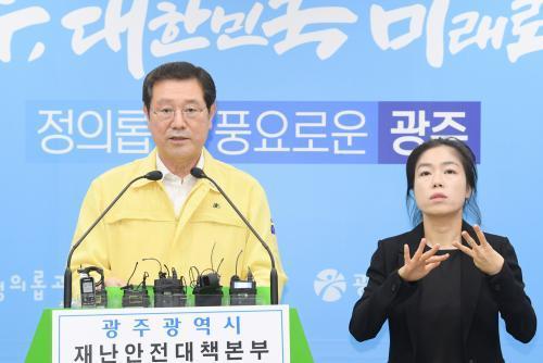 [½Åµ¿¾Æ¹æ¼Û=°¼º´ë ±âÀÚ] À̿뼷 ±¤ÁÖ±¤¿ª½ÃÀåÀÌ 3ÀÏ ¿ÀÈÄ ½Ãû ºê¸®Çη뿡¼ ¡®Äڷγª19¡¯¿Í °ü·ÃÇÑ ´ë½Ã¹Î È£¼Ò¹®À» ¹ßÇ¥ÇÏ°í ½Ã¹ÎµéÀÌ ¹æ¿ª¼öÄ¢À» öÀúÈ÷ ÁؼöÇØÁÙ °ÍÀ» ´çºÎÇϰí ÀÖ´Ù.