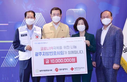 [½Åµ¿¾Æ¹æ¼Û=°¼º´ë ±âÀÚ] À̿뼷 ±¤ÁÖ±¤¿ª½ÃÀåÀÌ 28ÀÏ ¿ÀÀü ½Ãû Á¢°ß½Ç¿¡¼ ÀÓ¼±¼÷ ±¤ÁÖÁö¹æº¯È£»çȸ ȸÀåÀ¸·ÎºÎÅÍ Äڷγª19 À§±â±Øº¹°ú ¼Ò¿Ü°èÃþ Áö¿øÀ» À§ÇÑ ¼º±Ý 1000¸¸¿øÀ» Àü´Þ¹Þ°í ÀÖ´Ù.