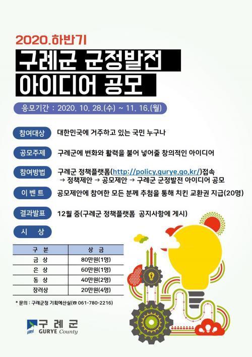 °ø¸ð ÁÖÁ¦´Â ±¸·Ê±º ¹ßÀüÀ» À§ÇÑ ¾ÆÀ̵ð¾î¶ó¸é Á¦ÇÑÀÌ ¾øÀ¸¸ç, Âü¿©´Â ±¸·Ê±º ¿Â¶óÀÎ Á¤Ã¥Ç÷§ÆûÀÎ ¡®±¸·Ê¼ÒÅ븶·ç(https://policy.gurye.go.kr)¡¯·Î Á¢¼ÓÇØ µî·ÏÇÏ¸é µÈ´Ù.