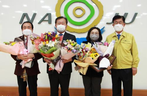 ³ªÁÖ½Ã(½ÃÀå °ÀαÔ)´Â Áö³ 1ÀÏ ½Ãû ´ëȸÀǽǿ¡¼ ¿¸° 12¿ù Á¤·ÊÁ¶È¸¸¦ ÅëÇØ ¼ûÀº ÀÇÀÎÀ¸·Î ¼±Á¤µÈ ½Ã¹Î ±è¼ºÁÖ, ¿ÀÁ¾¼ø, Á¤ÀºÁÖ ¾¾¿¡°Ô ǥâÀåÀ» ¼ö¿©Çß´Ù°í 2ÀÏ ¹àÇû´Ù.