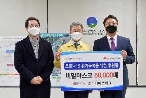 [½Åµ¿¾Æ¹æ¼Û=°¼º´ë ±âÀÚ] ±¤ÁÖ ¼±¸(±¸Ã»Àå ¼´ë¼®)´Â 28ÀÏ ¿ÀÈÄ ¢ßºñƼ¿¡ÇÁÅ×Å©(´ëÇ¥ ÀÌÁ¾¿±)·ÎºÎÅÍ Äڷγª19°¡ È®»êµÇ°í ÀÖ´Â °¡¿îµ¥ µ¹º½ÀÌ¿ôµéÀÌ ¾ÈÀüÇÑ »ýȰÀ» ÇÒ ¼ö ÀÖµµ·Ï ºñ¸»¸¶½ºÅ© 50,000¸Å(1,500¸¸¿ø »ó´ç)¸¦ ±âŹ¹Þ°í ¾î·Á¿î ÀÌ¿ôÀ» À§ÇØ ÈÄ¿øÇØ Áֽŵ¥ ´ëÇÏ¿© °¨»çÀÇ ¸¶À½À» ÀüÇß´Ù.