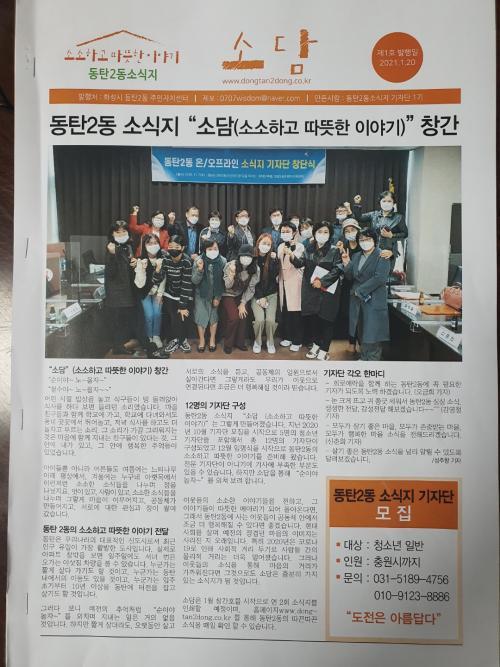 ÇÑÆí, µ¿Åº 2µ¿ ÁÖ¹ÎÀÚÄ¡À§¿øÈ¸´Â ¼Ò½ÄÁö¿¡ ¾çÁúÀÇ ÄÜÅÙÃ÷¸¦ ´ãÀ» ¼ö ÀÖµµ·Ï ¼ö½Ã·Î Áö¿ª¿¡ °ü½ÉÀÌ ¸¹Àº ±âÀÚ´ÜÀ» ¸ðÁýÇÒ °èȹÀÌ´Ù. ±âÀÚ´Ü È°µ¿¿¡ °ü½É ÀÖ´Â ÁÖ¹ÎÀº ÀüÈ·Î ¹®ÀÇÇÏ¸é µÈ´Ù.