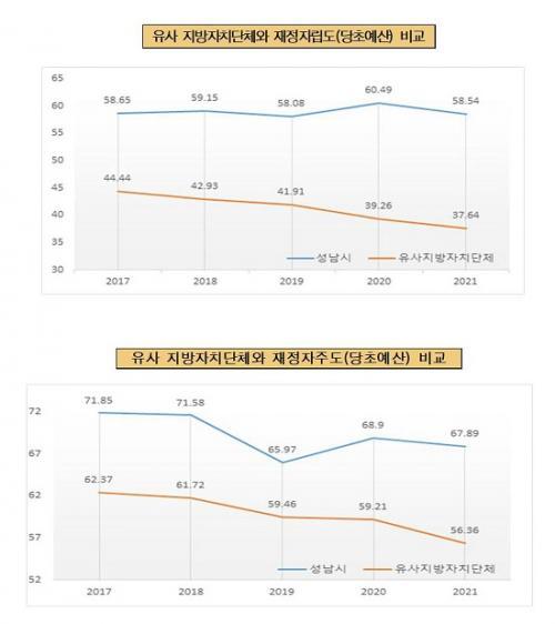 ÀÚü ¼öÀÔ¿¡ ÀÌÀüÀç¿øÀ» ´õÇØ °è»êÇÑ ºñÀ²ÀÎ ¼º³²½ÃÀÇ ÀçÁ¤ÀÚÁÖµµ´Â 67.89%·Î Áý°èµÅ À¯»ç ÁöÀÚü Æò±Õ ÀçÁ¤ÀÚÁÖµµ 56.36%º¸´Ù 11.53% ³ô¾Ò´Ù.