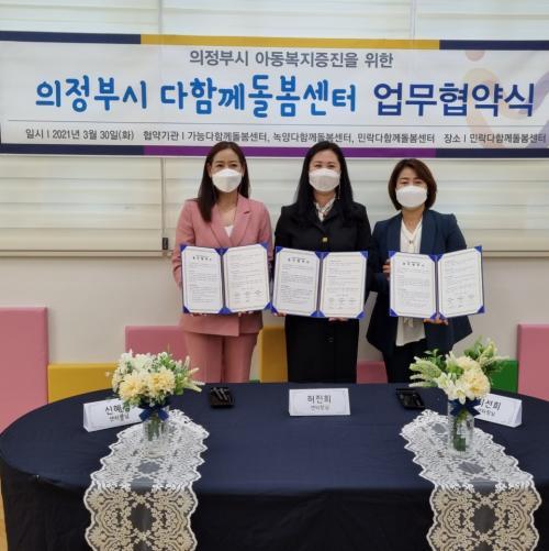´ÙÇÔ²²µ¹º½¼¾ÅÍ´Â ÃʵîÇб³ Á¤±Ô±³À° ÀÌ¿ÜÀÇ ½Ã°£ µ¿¾È µ¹º½¼ºñ½º¸¦ Á¦°øÇÏ´Â ½Ã¼³·Î¼, 3¿ù 30ÀÏ ¹æ°úÈÄ ¾ÈÀüÇÑ Ãʵº½ ¹× ¾Æµ¿º¹¸® ÁõÁøÀ̶ó´Â °øµ¿ ¾÷¹«¸¦ È¿À²ÀûÀ¸·Î ¼öÇàÇÏ°í »óÈ£Çù·Â °ü°è¸¦ °ø°íÈ÷ ÇϰíÀÚ °ü³» 3°³ ´ÙÇÔ²²µ¹º½¼¾ÅÍÀÇ ´ëÇ¥ÀÚ°£ ¾÷¹«Çù¾àÀ» ü°áÇß´Ù.