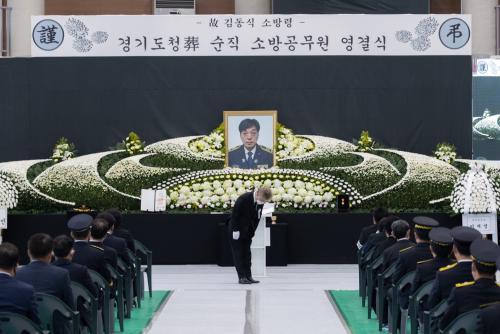 ÀÌÀç¸í Áö»ç´Â ¡®°í ±èµ¿½Ä ¼Ò¹æ·ÉÀÇ ¼þ°íÇÑ Èñ»ýÀ» Ã߸ðÇÕ´Ï´Ù¡¯¶ó´Â Á¦¸ñÀÇ ¿µ°á»ç¸¦ ÅëÇØ ¡°°íÀÎÀ» ¶°³ªº¸³»½Ã´Â À¯°¡Á·ºÐµé°ú µ¿·á¸¦ ÀÒÀº ¾ÆÇÄ¿¡ ½½ÆÛÇÏ°í °è½Ç ¼Ò¹æ °¡Á· ¿©·¯ºÐ²² Áø½ÉÀ¸·Î À§·ÎÀÇ ¸»¾¸À» µå¸°´Ù¡±°í ¸»Çß´Ù.