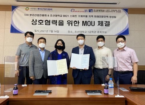 4´Ü°è BK21 ½º¸¶Æ®±â°èºÎǰ Áö¿ª ¹Ì·¡Àü¹®Àη¾缺ÆÀÀº »êÇÐÇùµ¿ ¸ðµ¨À» °³¹ßÇÏ°í ¿¬±¸ÇÏ´Â (»ç)»êÇÐÇùµ¿¿¬±¸¿øÀ» ºñ·ÔÇØ ÁÖÁ¶, ±ÝÇü, ¼Ò¼º°¡°ø µî »Ñ¸®»ê¾÷ÀÇ À°¼º°ú ÷´Üȸ¦ µµ¸ðÇÏ´Â (»ç)»Ñ¸®»ê¾÷ÁøÈïȸ¿Í °¢°¢ »óÈ£Çù·ÂÀ» À§ÇÑ ¾÷¹«Çù¾àÀ» ü°áÇß´Ù.
