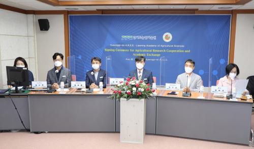 ±è¼®Ã¶ °æ±âµµ³ó¾÷±â¼ú¿ø ¿øÀå°ú ¾¥±Å¹Î(âË国ÚÅ) ·ª¿À´×¼º³ó¾÷°úÇпø ¿øÀåÀº À̳¯ °¢ ±â°üÀÇ È»óȸÀǽǿ¡¼ ¡®2021/2022 ¾×¼ÇÇ÷£¡¯ Çù¾à¼¿¡ ¼¸íÇß´Ù.