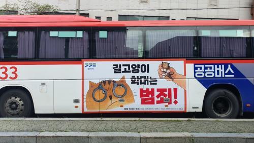 °ø°ø¹ö½º Â÷·® ¿Üº®¿¡ ¡®±æ°í¾çÀÌ Çдë´Â ¹üÁË¡¯ ¹®±¸¸¦ ´ãÀº È«º¸¹°À» ´«¿¡ ¶ç°Ô Á¦ÀÛÇØ ºÎÂøÇÔÀ¸·Î½á µ¿¹° Çд밡 ¡¸µ¿¹°º¸È£¹ý¡¹¿¡ ÀǰÅÇØ ó¹úÀ» ¹ÞÀ» ¼ö ÀÖ´Â ¡®¹üÁË¡¯ÀÓÀ» ÀνÄÇϵµ·Ï À¯µµÇÏ´Â °ÍÀÌ ¸ñÀûÀÌ´Ù.