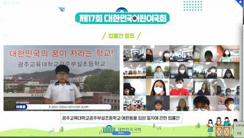 ±¤ÁÖ±³´ëºÎ¼³ÃÊ ¾î¸°À̱¹È¸¿¬±¸È¸ ¼Ò¼Ó 6Çгâ ÀÌÈ£ÁØ Çлý µî 9¸íÀº ¡®¾Ö¿Ïµ¿¹° ÀÔ¾ç ÀýÂ÷¿¡ °üÇÑ ¹ý·ü¾È¡¯À» Á¦¾ÈÇØ ¿ì¼ö»óÀÎ ±¹È¸ÀÇÀå»óÀ», ÀÓ´öÅ Áöµµ±³»ç´Â ºÎÃѸ® °â ±³À°ºÎÀå°ü»óÀ» ¼ö»óÇß´Ù.