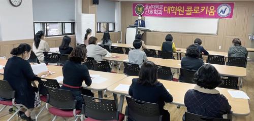 À̳¯ ÄÝ·ÎŰ¿ò¿¡ ÃÊûµÈ ±³¾çÇкΠ±è»ó¹Î ±³¼ö´Â °£È£Çаú ´ëÇпø»ýµéÀ» ´ë»óÀ¸·Î ¡®Àι®ÇÐÀû °üÁ¡¿¡¼ º» °£È£¡¯¸¦ ÁÖÁ¦·Î °£È£ÀÇ º»ÁúÀÎ µ¹º½ÀÇ Àǹ̸¦ Àι®ÇÐÀûÀ¸·Î ¼ºÂûÇÑ µÚ Åä·Ð°ú ÁúÀÇÀÀ´ä ½Ã°£À» ÅëÇØ ÁÖÁ¦¿¡ ´ëÇÑ Æø³ÐÀº ÀÌÇØ¿Í Á¤º¸¸¦ ±³È¯ÇÏ´Â ½Ã°£À» °¡Á³´Ù.