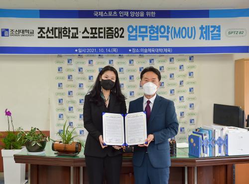 14ÀÏ Á¶¼±´ëÇб³ ¹Ì¼úüÀ°´ëÇÐ 3Ãþ¿¡¼ ÁøÇàµÈ Çù¾à½Ä¿¡´Â Á¶¼±´ëÇб³ ¹Ì¼úüÀ°´ëÇÐ ¼¿µÈ¯ ÇÐÀå, ½ºÆ÷ƼÁò82 ÃÖÁö¾Æ ´ëÇ¥¸¦ ºñ·ÔÇØ ´ëÇÐ ±¸¼º¿ø, °ü°èÀÚ µîÀÌ Âü¼®Çß´Ù.