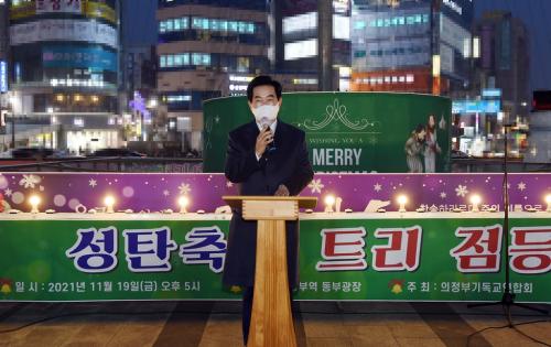 ¾Èº´¿ë ÀÇÁ¤ºÎ½ÃÀåÀº ¡°¼ºÅºÆ®¸®ÀÇ È¯ÇÑ ºÒºûÀÌ »ç¶û°ú ÈÇÕÀÇ ºûÀÌ µÇ¾î ÀÌ¿ô°ú ÇÔ²² µû¶æÇÑ ¿ÂÁ¤À» ³ª´©°í Èñ¸ÁÀ» Àü´ÞÇÏ´Â ÆòÈÀÇ ºÒºûÀ¸·Î ÀüÆÄµÇ±â¸¦ ¹Ù¶õ´Ù¡±°í ¹àÇû´Ù.