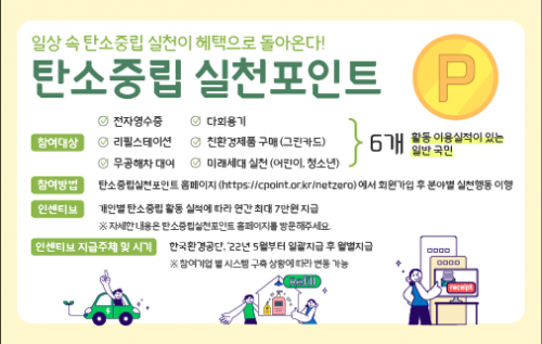 ź¼ÒÁ߸³ ½ÇõÆ÷ÀÎÆ® Á¦µµ´Â ÀüÀÚ¿µ¼öÁõ, ¸®ÇʽºÅ×À̼Ç, ¹«°øÇØÂ÷ ´ë¿©, ģȯ°æÁ¦Ç° ±¸¸Å(±×¸°Ä«µå), ´Ùȸ¿ë±â(¹è´Þ) »ç¿ë µî ź¼ÒÁ߸³ ½Çõ ½ÇÀû¿¡ µû¶ó Àμ¾Æ¼ºê¸¦ Áö±ÞÇÏ´Â °ÍÀ» ÁÖ¿ä³»¿ëÀ¸·Î ÇÑ´Ù.