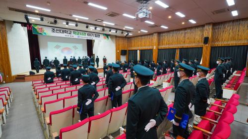 8ÀÏ Á¶¼±´ëÇб³ ´ëÈ£Àü±âȦ¿¡¼ ÁøÇàµÈ 60±â ÀÓ°ü½ÄÀº ¿©±º 9¸íÀ» Æ÷ÇÔÇØ ÃÑ 52¸íÀÇ »ç°üÈ帻ýÀÌ ÀÚ¶û½º·¯¿î ´ëÇѹα¹ À°±º Àå±³·Î »õ·Ó°Ô Ãâ¹ßÇÏ´Â ÀÚ¸®·Î ¸¶·ÃµÆ´Ù.