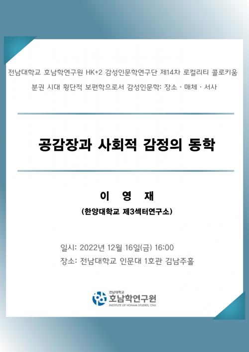 Àü³²´ë È£³²Çבּ¸¿ø(¿øÀå Á¤¸íÁß ±³¼ö) HK+2 °¨¼ºÀι®Çבּ¸´ÜÀº À̳¯ ÄÝ·ÎŰ¿ò¿¡¼ ÀÌ¿µÀç ±³¼ö(ÇѾç´ë Á¦3¼½ÅÍ¿¬±¸¼Ò)¸¦ ÃÊû, ÃÖ±Ù Çа迡¼ »õ·Î¿î »çȸºÐ¼®ÀÇ ¹æ¹ý·ÐÀ¸·Î ºÎ»óÇÑ ¡®°ø°¨Àå(ÍìÊïíÞ)¡¯ ¿¬±¸¿¡ ´ëÇÑ ºñÆÇÀû °ËÅ並 ÅëÇØ ±×°ÍÀÇ ÀÌ·ÐÀû °³³äȸ¦ µÑ·¯½Ñ ¿©·¯ ³Á¦¸¦ Åä·ÐÇÑ´Ù.