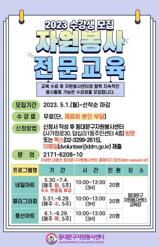 ±³À° ¼ö·á ÈÄ µ¿´ë¹®±¸ ÀÚ¿øºÀ»ç¼¾ÅÍ¿Í ÇÔ²² ºÀ»çȰµ¿ÀÌ °¡´ÉÇÑ °ü³» ÁÖ¹ÎÀÌ¸é ´©±¸µçÁö ½ÅûÀÌ °¡´ÉÇϸç, Âü¿©¸¦ ¿øÇÏ´Â °æ¿ì ½Åû¼¸¦ ÀÛ¼ºÇØ µ¿´ë¹®±¸ÀÚ¿øºÀ»ç¼¾ÅÍ(µ¿´ë¹®±¸ »ç°¡Á¤·Î30, ´ä½Ê¸®1µ¿ Áֹμ¾ÅÍ 4Ãþ)·Î ¹æ¹®Çϰųª ÀüÀÚ¸ÞÀÏ(dvolunteer@ddm.go.kr) ¶Ç´Â ÆÑ½º(02-3299-2615)·Î ½ÅûÇÏ¸é µÈ´Ù.