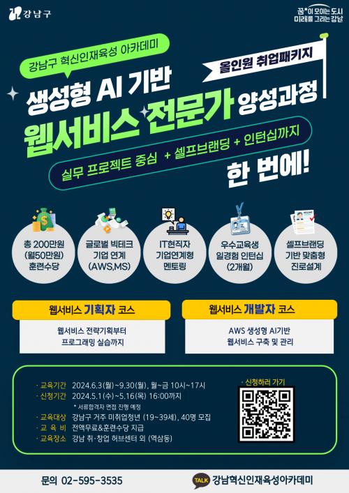 °³²±¸ Çõ½ÅÀÎÀçÀ°¼º ¾ÆÄ«µ¥¹Ì´Â û³â¿¡°Ô 4Â÷ »ê¾÷Çõ¸í, ÀΰøÁö´É, ºòµ¥ÀÌÅÍ µî µðÁöÅÐ ´ëÀüȯ ½Ã´ë¿¡ ¸Â´Â Á÷¾÷±³À°À» Á¦°øÇÏ´Â Ãë¾÷ Áö¿ø ÇÁ·Î±×·¥ÀÌ´Ù. ÇöÀå¿¡¼ Áï½Ã ÅõÀÔ °¡´ÉÇÑ ½Ç¹« ÀÎÀ縦 ¾ç¼ºÇØ Ãë¾÷±îÁö ¿¬°èÇÑ´Ù. ¿ÃÇØ´Â »ý¼ºÇü AI ±â¹Ý À¥¼ºñ½º Àü¹®°¡ °úÁ¤À» °³¼³Çϰí, ±âȹÀÚ ÄÚ½º¿Í °³¹ßÀÚ ÄÚ½º·Î ³ª´² °¢ 20¸í¾¿ ÃÑ 40¸íÀÇ Âü¿©ÀÚ¸¦ ¸ðÁýÇÑ´Ù.