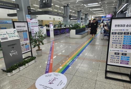ÀÌ¿¡ ±¸´Â ºÎ¼º°·Î »ö»óÀ» ±¸ºÐÇØ ÁÖ¿ä ¾÷¹«¸¦ Ç¥½ÃÇÑ ¡®¹Î¿ø ¾È³»¼±¡¯À» Á¾Çչοø½Ç ¹Ù´Ú¿¡ ºÎÂø, ÁֹεéÀÌ ¹æ¹®¸ñÀû¿¡ ¸Â´Â ⱸ¸¦ ½±°Ô ÆÄ¾ÇÇÒ ¼ö ÀÖµµ·Ï Çß´Ù.