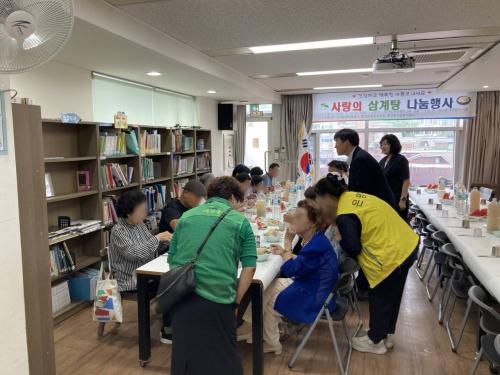 ½Å¸íÈñ »õ¸¶À»ºÎ³àȸÀåÀº ¡°Ä£ºÎ¸ð´Ô °°Àº ¾î¸£½ÅµéÀ» À§ÇØ »ç¶û°ú Á¸°æÀÇ ¸¶À½À» ´ã¾Æ »ï°èÅÁÀ» ²ú¿´´Ù¡±¸ç ¡°¼Ò¹ÚÇÑ À½½ÄÀÌÁö¸¸ ¸ÀÀÖ°Ô µå½Ã°í, °í¸¿´Ù°í ¸»ÇØÁ༠º¸¶÷°ú ÇູÀ» ´À²¼´Ù¡±°í ¸»Çß´Ù.