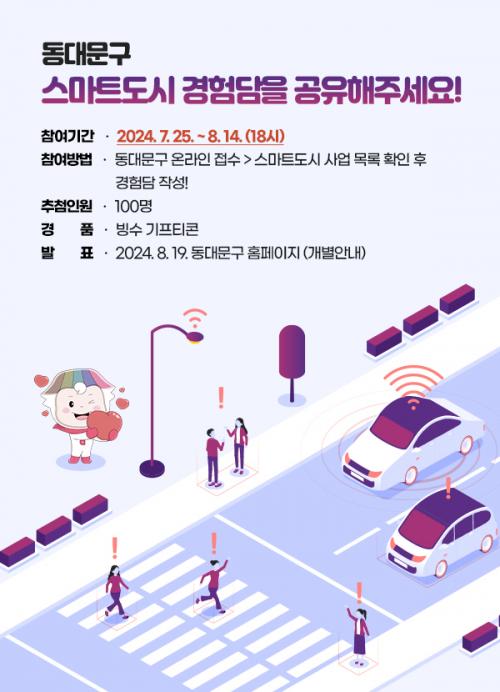Âü¿©±â°£Àº 7¿ù 25ÀϺÎÅÍ 8¿ù 14ÀϱîÁöÀ̸ç, µ¿´ë¹®±¸ ´©¸®Áý ¿Â¶óÀÎ Á¢¼ö¿¡¼ ¡ã½º¸¶Æ® ½°ÅÍ ¡ã½º¸¶Æ® ±×´Ã¸· ¡ã½º¸¶Æ® Ⱦ´Üº¸µµ ¡ãÅëÇÕ ½º¸¶Æ®Æú(¿ìȸÀü¾Ë¸®¹Ì, ºñ»óº§, ¿ÍÀÌÆÄÀÌ) µî 44°³ÀÇ ½º¸¶Æ®µµ½Ã »ç¾÷ ¸ñ·ÏÀ» È®ÀÎ ÈÄ ÀÌÁß °æÇèÇÑ ¼ºñ½º¿¡ ´ëÇØ ÀÛ¼º¡¤Á¦ÃâÇÏ¸é µÈ´Ù.