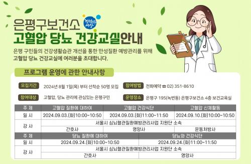 ÇÁ·Î±×·¥ ½ÅûÀº Áö³ 1ÀϺÎÅÍ ÀºÆò±¸º¸°Ç¼Ò ÀºÆò°Ç°°ü¸®¼¾ÅÍ·Î ¼±Âø¼ø 50¸í ÀüÈ ½ÅûÀ» ¹Þ°í ÀÖÀ¸¸ç, Âü¿© ºñ¿ëÀº ¹«·áÀÌ´Ù. ÀÚ¼¼ÇÑ »çÇ×Àº ÀºÆò°Ç°°ü¸®¼¾ÅÍ·Î ÀüÈ ¹®ÀÇÇÏ¸é µÈ´Ù.