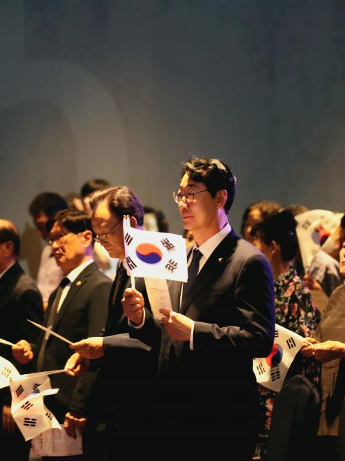À̳¯ ±â³ä½Ä¿¡´Â Á¤¸í±Ù ȼº½ÃÀå, ±¤º¹È¸ ȼºÁöȸÀå ¹× ±¤º¹È¸¿ø, º¸ÈÆ´ÜüÀå, ±¹È¸ÀÇ¿ø, µµ¡¤½ÃÀÇ¿ø, °ø°ø±â°üÀå, ½Ã¹Î µî ¾à 200¿© ¸íÀÌ Âü¼®ÇØ, Á¶±¹ µ¶¸³À» À§ÇØ Èñ»ýÇÑ ¼±¿µéÀÇ À§¾÷À» ±â¸®°í ±× Èļյ鿡 ´ëÇÑ ¿¹¿ì¸¦ ´ÙÇÏ´Â ½Ã°£À» °¡Á³´Ù.