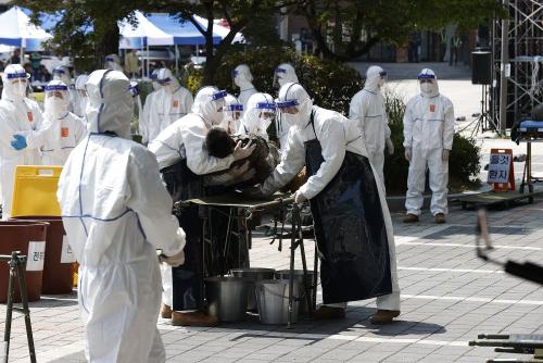 ÈÆ·Ã ÁøÇàÀº °æº¸ÀüÆÄ¸¦ ½ÃÀÛÀ¸·Î ¹æ»ç´É¿¡ ¿À¿°µÈ Àåºñ¸¦ Á¦¿°Çϰí, ÇÇÆø ȯÀÚ ºÐ·ù, Á¦¿° µîÀ» ½Ç½ÃÇÑ ÀÌÈÄ Áø·á ¹× ÈÄ¼Û ¼øÀ¸·Î ÁøÇàµÆ´Ù. ºñ»ó½Ã ¿ì¹ß»óȲÀ» ÇØ°áÇϱâ À§ÇÑ Çö¾È°úÁ¦ ÅäÀǵµ ½Ç½ÃÇß´Ù.