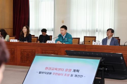 ÀÌ¿¡ µµºÀȯ°æ±³À°¼¾ÅÍ ¹× ½£¼Ó¾Ö °ü°èÀÚ´Â Á¦¾ÈÇÑ ³»¿ë¿¡ ´ëÇØ ¸¸Á·°¨À» Ç¥ÇßÀ¸¸ç, Áö¿ª Çö¾È ÇØ°áÀ» À§ÇØ Áֹΰú ¼ÒÅëÇÏ´Â ¿À¾ð¼® µµºÀ±¸Ã»Àå¿¡°Ô °¨»ç Àλ縦 ÀüÇß´Ù.