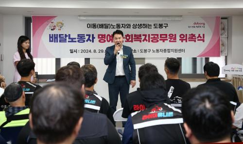 ¿À¾ð¼® µµºÀ±¸Ã»ÀåÀº ¡°¸í¿¹»çȸº¹Áö°ø¹«¿øÀ¸·Î º¹Áö»ç°¢Áö´ë¿¡ ÀÖ´Â ¾î·Á¿î ÀÌ¿ôµéÀ» ¹ß±¼Çϱâ À§ÇØ ¹è´Þ³ëµ¿ÀÚ°¡ ÇÔ²²ÇØÁÖ½Å´Ù´Ï Áø½ÉÀ¸·Î °¨»çµå¸°´Ù. ¾ÕÀ¸·Î Ȱµ¿À» ÇÏ´Â µ¥ ÀÖ¾î ºÎÁ·ÇÔÀÌ ¾øµµ·Ï Áö¿øÇϰڴ١±¸é¼, ¡°¾Æ¿ï·¯ ¹è´Þ³ëµ¿ÀÚÀÇ ±ÇÀÍ ÁõÁøÀ» À§ÇÑ ÀÏ¿¡µµ Àû±Ø Èû¾²µµ·Ï Çϰڴ١±°í ¸»Çß´Ù.
