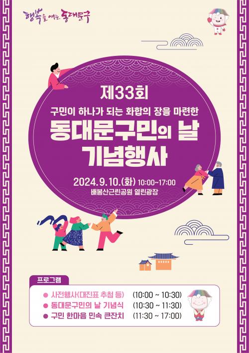 µ¿´ë¹®±¸¹ÎÀÇ ³¯Àº 1992³â¿¡ Á¦Á¤µÇ¾î ¿ÃÇØ·Î 33ȸ¸¦ ¸ÂÀÌÇÑ´Ù. À̹ø Çà»ç´Â µ¿´ë¹®±¸¿¡ ´ëÇÑ ÀÚ±à½ÉÀ» °íÃëÇÏ°í ±¸¹ÎµéÀÌ Çϳª°¡ µÇ´Â ÈÇÕÀÇ ÀåÀ» ¸¶·ÃÇϱâ À§ÇØ ±âȹµÆ´Ù.