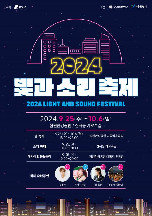 9¿ù 25ÀϺÎÅÍ 10¿ù6ÀϱîÁö(19½Ã~23½Ã) Àá¿øÇѰ°ø¿ø ´Ù¸ñÀû¿îµ¿Àå¿¡¼ ºû Á¶Çü¹°À» ¿î¿µÇØ ºûÀ¸·Î ¹°µç ÇѰ ¾ß°æÀ» Áñ±æ ¼ö ÀÖµµ·Ï ÇÒ °èȹÀÌ´Ù. ºû ³îÀÌÅÍ ºûÀÇ Á¤¿ø ºûÀÇ ÅͳΠµî 3°¡Áö Å׸¶·Î ±¸¼ºÇØ º°ÅͳÎ, ²É¸¶Â÷, Åä³¢ µî ÃÑ 10Á¾ÀÇ LED Á¶Çü¹°À» ¼³Ä¡Çß´Ù. Áö³ 9¿ù 7~8ÀÏ¿¡ ¿¸° À²Çö°ø¿ø Á¤¿øÃàÁ¦¿¡¼ Å« Àα⸦ ²ø¾ú´ø 6m ³ôÀÌÀÇ ÃÊ´ëÇü °¡µçº£¾îµµ ´Ù½Ã ¼±º¸ÀδÙ. ¶ÇÇÑ, 19½ÃºÎÅÍ 20½Ã±îÁö ¹ö½ºÅ·ÀÌ ¿·Á ¼±¼±ÇÑ °¹Ù¶÷À» ¸ÂÀ¸¸ç ÀÏ»óÀÇ Èú¸µÀ» °æÇèÇÒ ¼ö ÀÖ´Ù. ÀÚ¼¼ÇÑ Çà»ç ³»¿ëÀ» ÃàÁ¦ °ø½Ä ÀνºÅ¸±×·¥(lightandsoundfestival2024)À» ÅëÇØ È®ÀÎÇÒ ¼ö ÀÖ´Ù