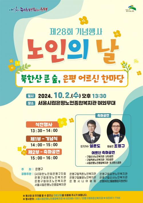 À̹ø ±â³äÇà»ç´Â 10¿ù 2ÀÏ ¡®³ëÀÎÀÇ ³¯¡¯À» ¸Â¾Æ ³ëÀÎ °ø°æÀÇ Àǹ̸¦ ´õ ±íÀÌ ÀÌÇØÇÏ°í ±â³äÇϰíÀÚ ¸¶·ÃµÆ´Ù. ÀÌ´Â ÀºÆò±¸°¡ ÁÖÃÖÇϰí ÀºÆò±¸³ëÀκ¹Áö¿¬ÇÕȸ¿Í (»ç)´ëÇѳëÀÎȸÀºÆò±¸Áöȸ°¡ ÁÖ°üÇß´Ù.