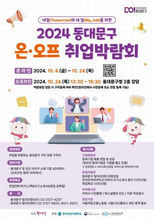 ¿ÀÇÁ¶óÀÎ Ãë¾÷¹Ú¶÷ȸ´Â 10¿ù 24ÀÏ(¸ñ) ¿ÀÈÄ 1½Ã 30ºÐºÎÅÍ 4½Ã 30ºÐ±îÁö µ¿´ë¹®±¸Ã»¿¡¼ ÁøÇàµÈ´Ù.