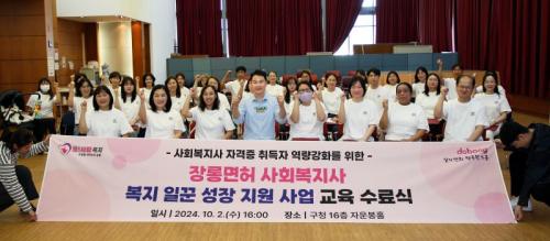 ±¸´Â ¾Õ¼ »çȸº¹Áö»ç Àü¹®ÀÚ°ÝÁõÀ» ÃëµæÇÏ°íµµ Àå·Õ¸éÇã·Î ¹¬ÇôµÎ°í ÀÖ´Â ±¸¹ÎÀÇ »çȸ ÁøÃâÀ» µ½±â À§ÇØ 'Àå·Õ¸éÇã »çȸº¹Áö»ç º¹Áö ÀÏ²Û ¼ºÀå Áö¿ø±³À°' ÇÁ·Î±×·¥À» ½Ç½ÃÇß´Ù.