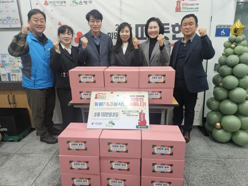 À̹ø Àü´Þ½Ä¿¡¼´Â µ¿¿øF&B¿¡¼ »ý»êÇÑ ½Ä·áǰÀ¸·Î ±¸¼ºµÈ ÃÑ 130¸¸ ¿ø »ó´çÀÇ ¡®»ç¶ûÀÇ »óÀÚ¡¯ 15°³°¡ ¸¶·ÃµÆÀ¸¸ç, °ü³» Àú¼ÒµæÃþ°ú Ãë¾à°èÃþ °¡±¸¿¡ Àü´Þ ¿¹Á¤ÀÌ´Ù.