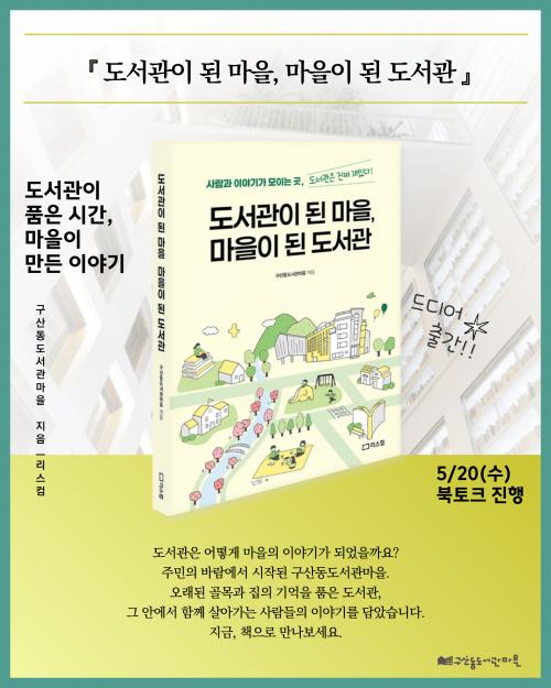 ±¸»êµ¿µµ¼°ü¸¶À»Àº À̹ø ¹ß°£À» ±â³äÇØ ¿À´Â 5¿ù 20ÀÏ ¼ö¿äÀÏ ¿ÀÈÄ 7½Ã¿¡ ±¸»êµ¿µµ¼°ü¸¶À»¿¡¼ Ãâ°£ ±â³ä ºÏÅäÅ©¸¦ °³ÃÖÇÑ´Ù. ºÏÅäÅ©¿¡¼´Â µµ¼ ¹ß°£ÀÇ Àǹ̸¦ ³ª´©°í, Ã¥¿¡ ´ã±ä µµ¼°üÀÇ Áö³ ½Ã°£°ú ¾ÕÀ¸·ÎÀÇ ¹æÇâÀ» Áö¿ªÁֹΰú ÇÔ²² À̾߱âÇÏ´Â ½Ã°£À» °®´Â´Ù.