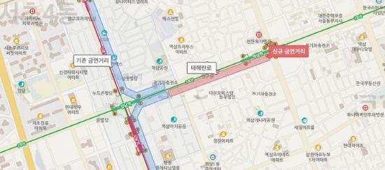 À̹ø ´Ü¼Ó ´ë»óÀº Å×Çì¶õ·Î ÀÏ´ë 2°³ ±¸°£ÀÌ´Ù. µ¿Ãø Àεµ´Â ¼±¸ª¿ª 2¹ø ÃⱸºÎÅÍ Æ÷½ºÄÚ»ç°Å¸®±îÁö 700m, ¼Ãø Àεµ´Â Ä·ºê¸®ÁöºôµùºÎÅÍ ¿ª»ï¿ª 2¹ø Ãⱸ±îÁö 685m ±¸°£ÀÌ´Ù. °³²±¸´Â À¯µ¿Àα¸°¡ ¸¹Àº ¾÷¹«¡¤»ó¾÷ ¹ÐÁý Áö¿ªÀÇ °£Á¢Èí¿¬ ÇÇÇØ¸¦ ÁÙÀ̰í, ÃâÅð±Ù±æ º¸Çàȯ°æÀ» °³¼±Çϱâ À§ÇØ ÀÌ Àϴ븦 ½Å±Ô ±Ý¿¬°Å¸®·Î ÁöÁ¤Çß´Ù.