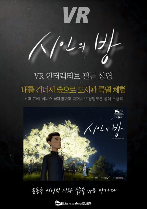 ¡®½ÃÀÎÀÇ ¹æ¡¯Àº À±µ¿ÁÖ ½ÃÀÎÀÇ »î°ú ¹®Çм¼°è¸¦ °¡»óÇö½Ç·Î ±¸ÇöÇÑ ¸ôÀÔÇü ÄÜÅÙÃ÷·Î, ±¹°¡À¯»êû°ú ±¹°¡À¯»êÁøÈï¿øÀÌ ¹è±ÞÇß´Ù. ÀÌ¿ëÀÚ´Â °¡»óÇö½Ç ±â±â¸¦ Âø¿ëÇϰí Ä£ÇÊ ¿ø°í¿Í ½Ã ³¶¼ÛÀ» ¹ÙÅÁÀ¸·Î ±¸¼ºµÈ Àå¸éÀ» üÇèÇϸç, ½Ã ¼¼°è¸¦ ´õ¿í ÀÔüÀûÀ¸·Î °æÇèÇÒ ¼ö ÀÖ´Ù.